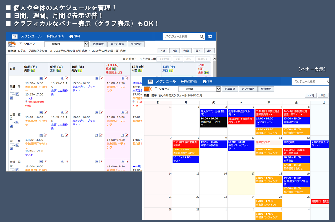 ビジネスの急激な変化に対応するには、コミュニケーションの強化は欠かせませんが、複数の人が効率よく作業するためのベースをご提供するのが「匠tacmi」シリーズです。グループウェア、勤怠管理、ワークフロー、WebDB、営業支援(SFA)と豊富な機能で課題や問題を解決します。